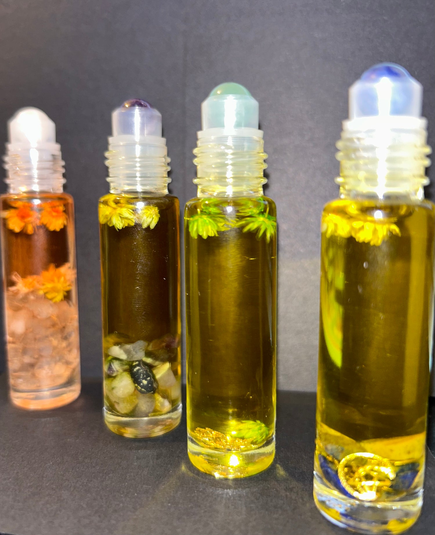 Oils infused with Herbs, Flowers, Intentions and Various Crystals to help enhance...